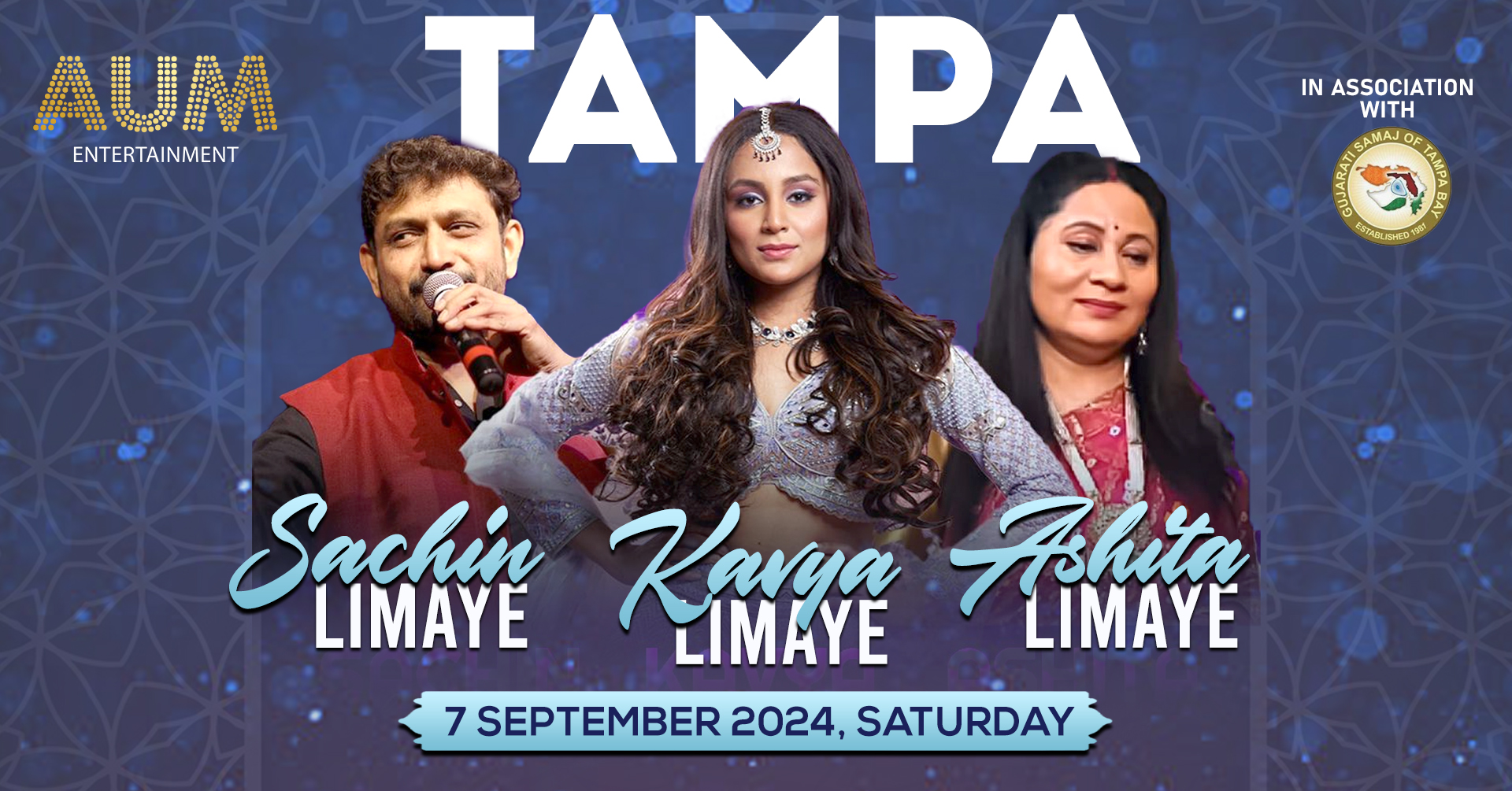 September 7, 2024: Kavya Limaye, Sachin Limaye & Ashita Limaye (Laxmi Vilas Palace Group)AUM ENTERTAINMENT in association with GSTB(Gujarati Samaj of Tampabay)Welcome to the open community platform of Aum Entertainment to celebrate “GARBOUTSAV” of "Tampa Bay" to promote UNESCO’s “THE GARBA OF GUJARAT” on September 7th and 8th, 2024. Biggest and Longest 3 Solo Group performances. Live Garba by 3 rising stars from Gujarat. Get ready to welcome not 1, not 2, but 3 rising stars from Gujrat who will be having their grand entry in USA for first time in "Tampa Bay". Join us to celebrate this NAVARATRI occasion with the rising stars of Gujarat.September 7th, 2024 Saturday : Kavya Limaye, Sachin Limaye & Ashita Limaye (Laxmi Vilas Palace Group)September 8th, 2024 Sunday : Dimple Biscuitwala & Vraj Kshatriya GroupsLimited time COMBO price available to GSTB(Gujarati Samaj of Tampa Bay) of $30 UNTIL SOLD OUT (NO PROCESSING CHARGES on aumentertainmentus.com).Regular Ticket: $25. At door $35Group of 10 or More Until Sold Out: $20Special Limited Time Combo Price for Non-Members for BOTH events: $35 UNTIL SOLD OUTAll sales are final.All tickets are non-refundable, non-disputable and non-transferable once purchased.The person in whose name the tickets is issued must collect the tickets at the venue.You will see a charge from aumentertainmentus.com on your credit card statement for this order.Please present a printed or digital copy of this page along with your Photo ID to collect your tickets at the venue. Please do carry a valid Photo ID along with you to the event.In case of cancellation or reschedule of the event you can claim for the refund. but ticket purchased Service Fee is (non-refundable).